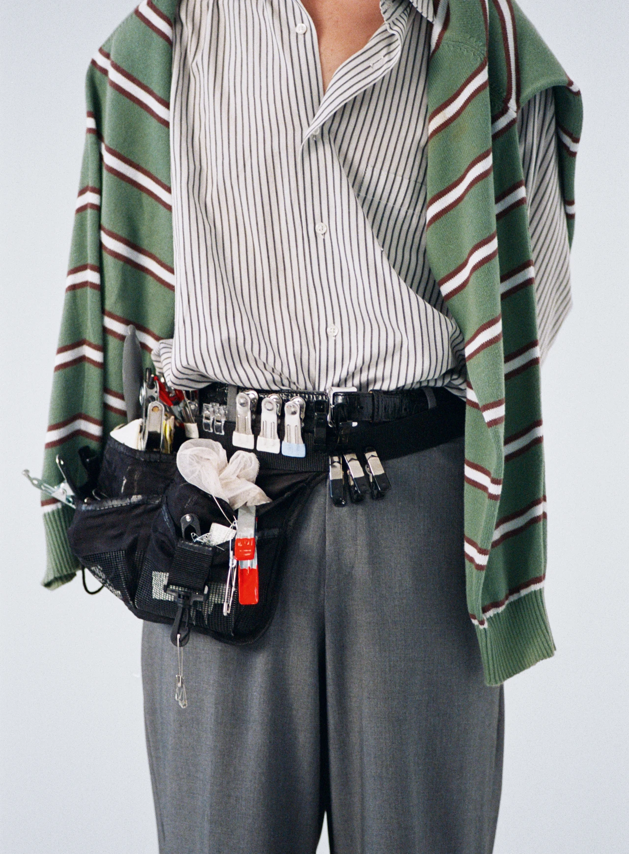 Conceived at the crossroads of documentary and portraiture, the project builds a visual directory—faces, gestures, tools, kits—to reveal the reality of a profession described as a logistical and creative pillar of fashion shoots. Benarroch insists on the kit as biography: “I find assistant stylists fascinating.” “Their style, both functional, all-terrain, and aesthetically mastered, is the result of real thought.” “Their kit reveals a lot about their personality.” Then comes the recognition problem, stated plainly: they carry the essential logistics, without their contribution being recognized at its fair value.