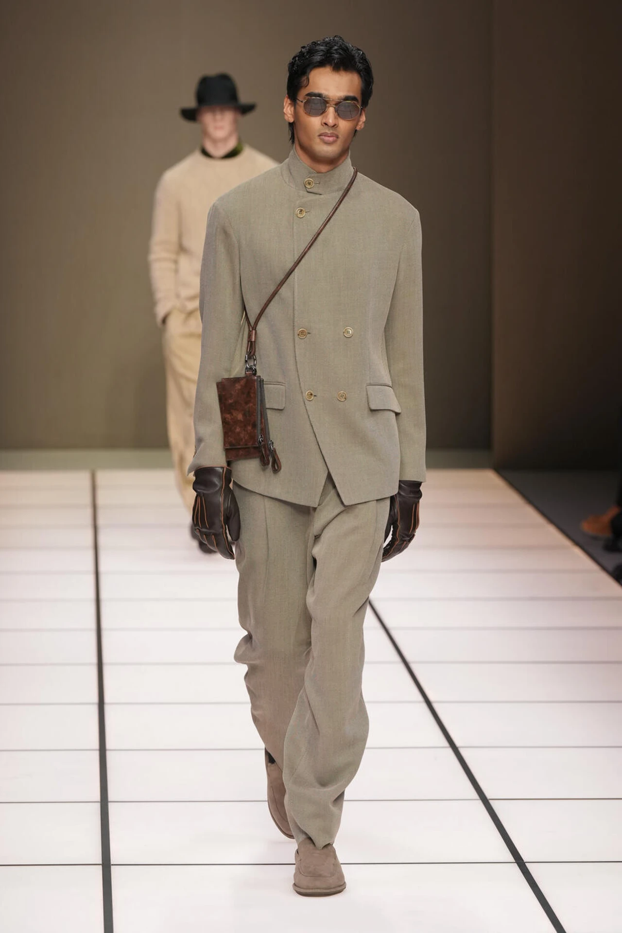 Cangiante is an Italian word used to describe things that appear consistent, yet shift depending on angle and light. For Fall/Winter 2026–2027, it became Armani’s headline, and not only because the collection leaned into iridescent, silk-rich textures. There’s a deeper reason the term resonated. This show, presented at the close of Milan Fashion Week, was the first menswear runway staged without Giorgio Armani’s direct involvement, following his death in September 2025. In other houses, that kind of threshold invites a loud reset. Here, the message was quieter and more strategic: the codes remain, but the surface is allowed to move.